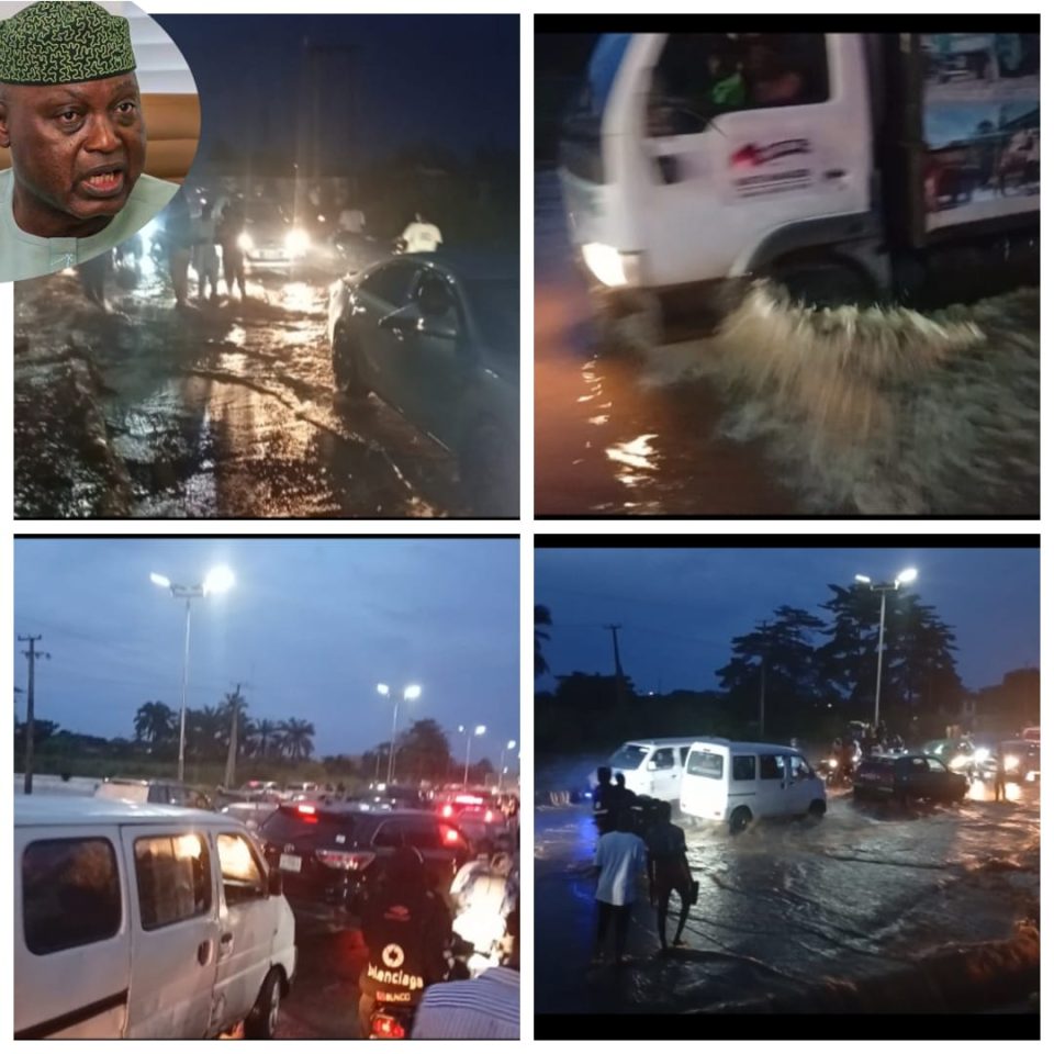 NEWSTODAYNG reports around 7:30pm that the flood, which has overflowed the bridge in the area, left road users frustrated and unable to pass.