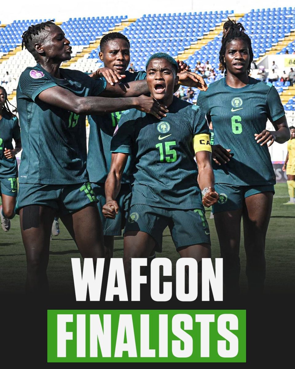SportsWAFCON ’24: Super Falcons reach final, defeat South Africa 2-1 by EditorJuly 22, 2025July 22, 2025 Share Adebayo Adenrele The Super Falcons of Nigeria has defeated Bayana Bayana of South Africa by 2 goals to 1 in the ongoing WAFCON competition in Morocco. Nigeria has now become the finalists, to face the winners between Morocco and Ghana.