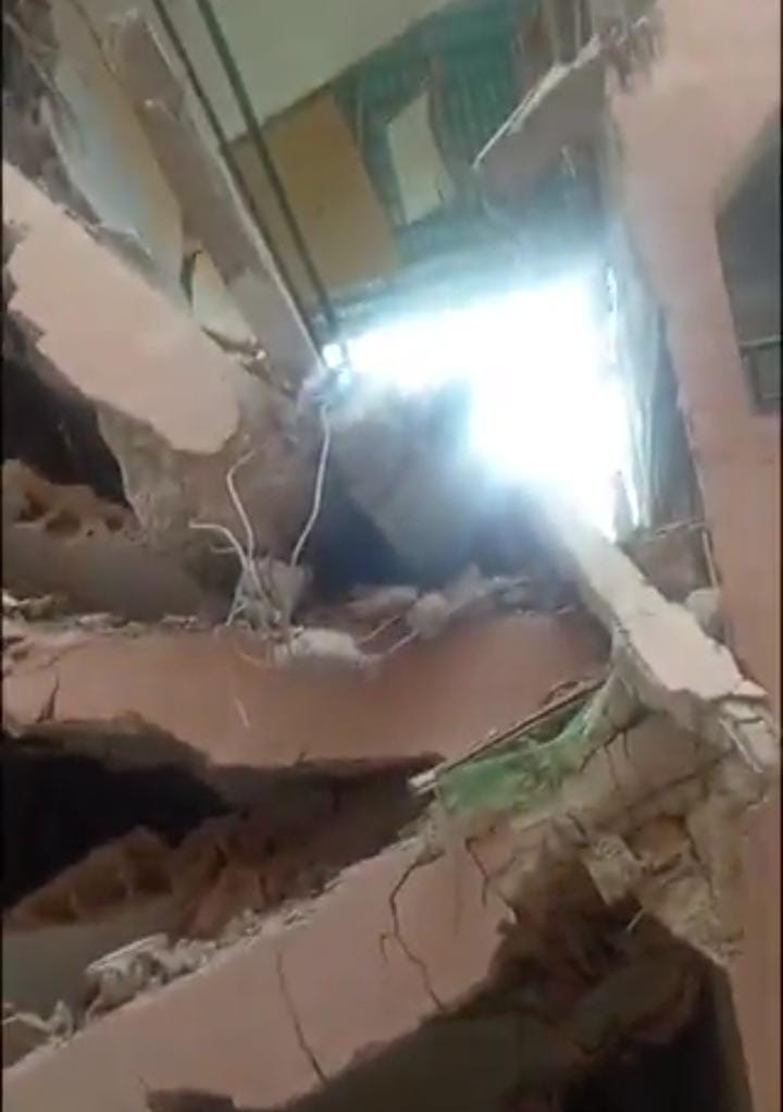 In a viral video, the building collapsed and destroyed nearly all property.