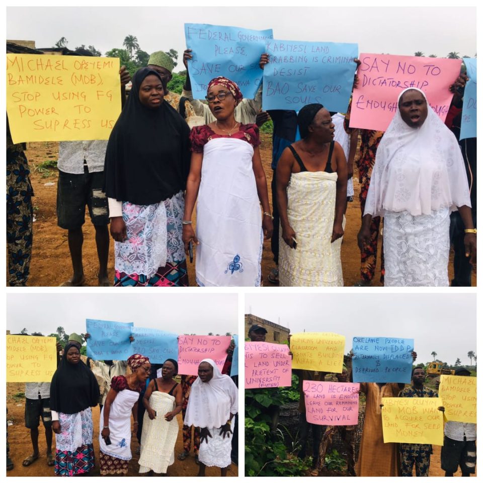 Speaking with journalists, the protest leader, Sunday Oyeyemi commended the Senate Leader, Senator Michael Opeyemi Bamidele, for facilitating the establishment of the university, but lamented that the latest move to annex an extra 10 hectares constitutes an encroachment on the remaining land critical to their livelihoods.